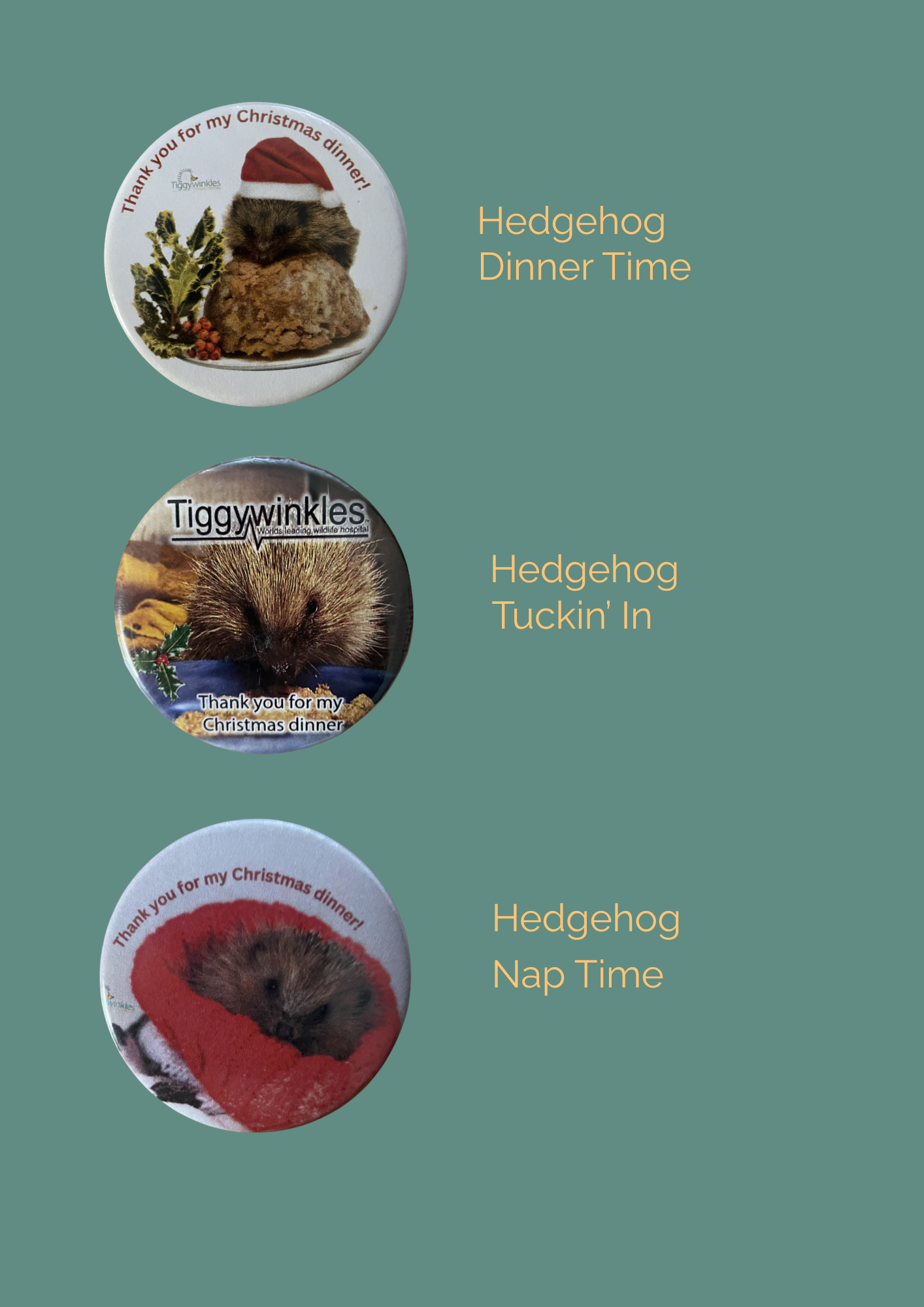 As a thank you for your kindness, you’ll receive an exclusive Tiggywinkles Christmas Dinner Pin Badge - the perfect way to show your support (or to gift to an animal lover!).